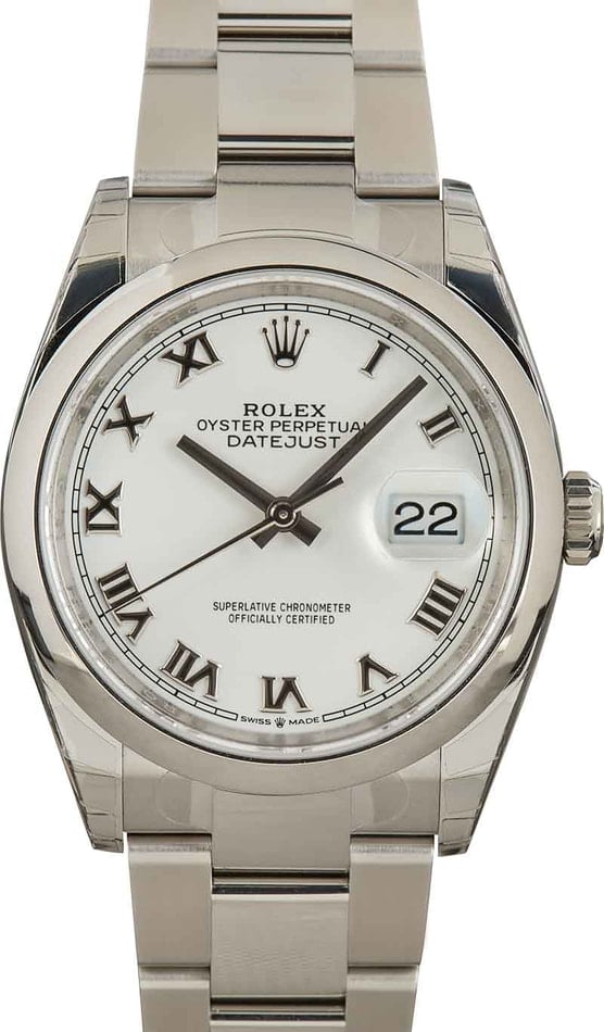 Pre-owned Rolex Datejust ref 126200 (2021) 36mm model is about as classic as it gets when it comes to a coveted white dial Rolex watch. Avid luxury watch collectors worldwide seek this design set because it is timeless and versatile. Are you looking for a daily wearer that is durable and understated? This pre-owned Rolex is the watch for your wrist. You may also be in the market for a special occasion watch that looks sharp tucked under the cuff of a dress sleeve. This iconic watch is suited for that as well. It checks all the right boxes when searching for the perfect Rolex watch, including a singularly reliable self-winding mechanical movement, long-lasting lume, a comfortable size and weight, a durable waterproof case, and an affordable price point.